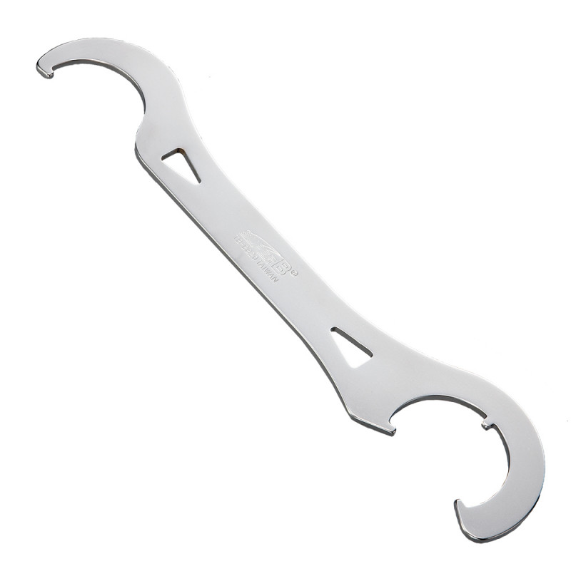 One side is a single hook, the other is a hook spanner with 3 notches for better engagement in the lockrings.