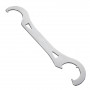 The three-hook end will fit 3-notch lockrings with a maximum outside diameter of 46mm, and minor diameter (in the notches) of 40mm.