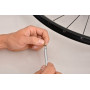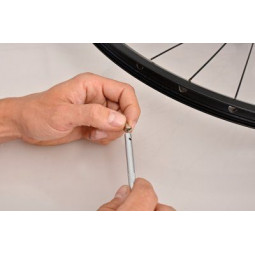 It’s firm spring enables you, to simply attached the nipple and screw it through a double wall rim on the spoke.