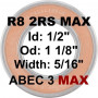 Roulement R8 2RS MAX 1/2 x 1 1/8 x 5/16 (12,7 x 28,57 x 7,94 mm)